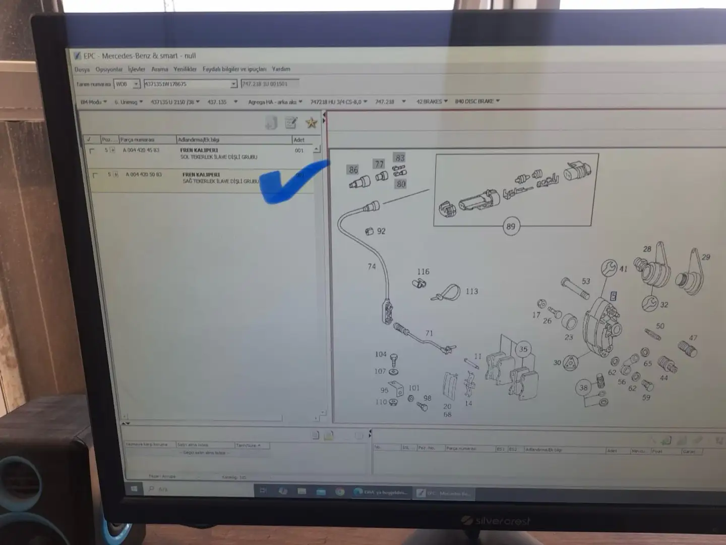 Kaliper sağ arka | A0044205083 | Ürün markası belirtilmemiş | 1 |